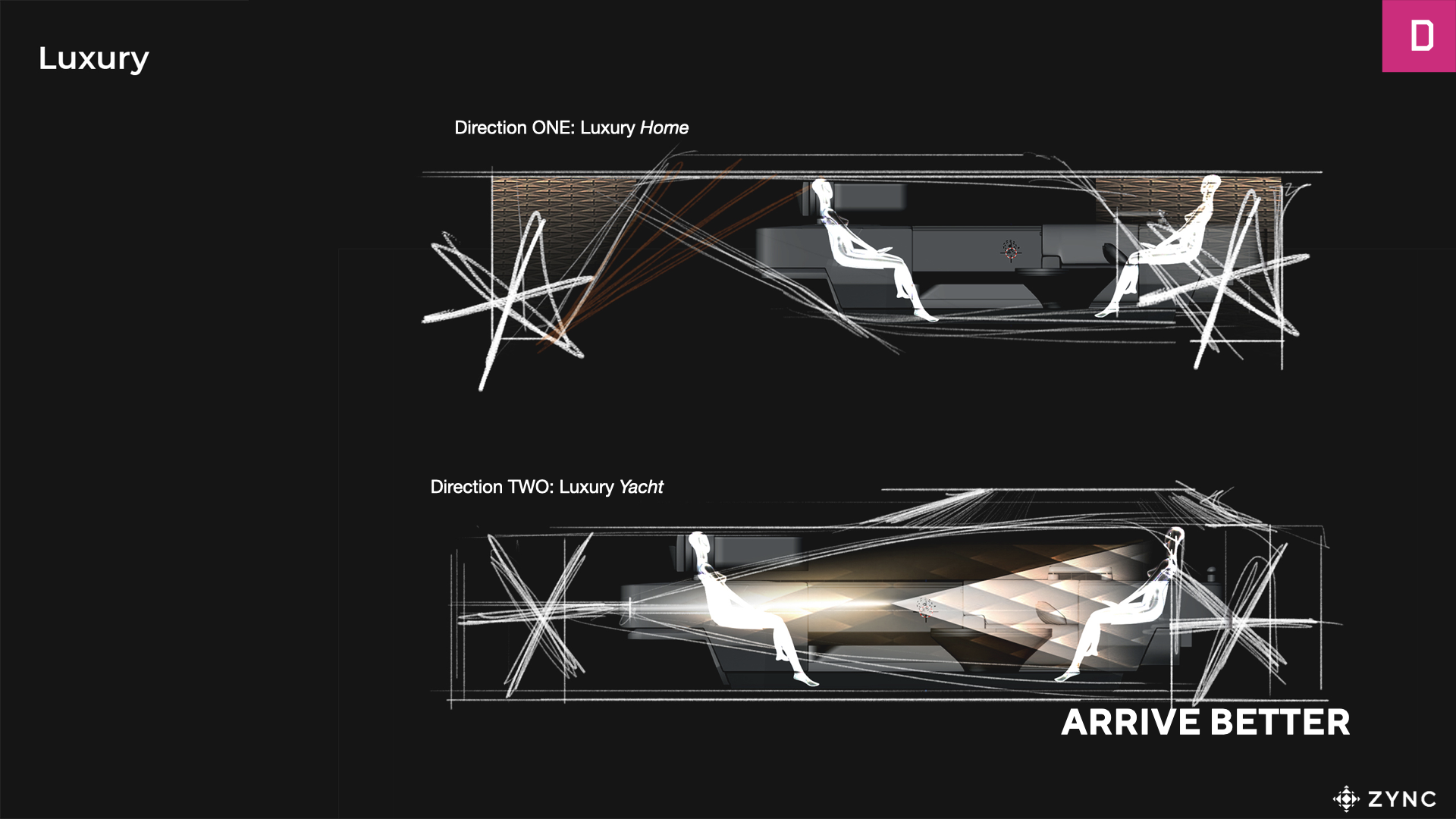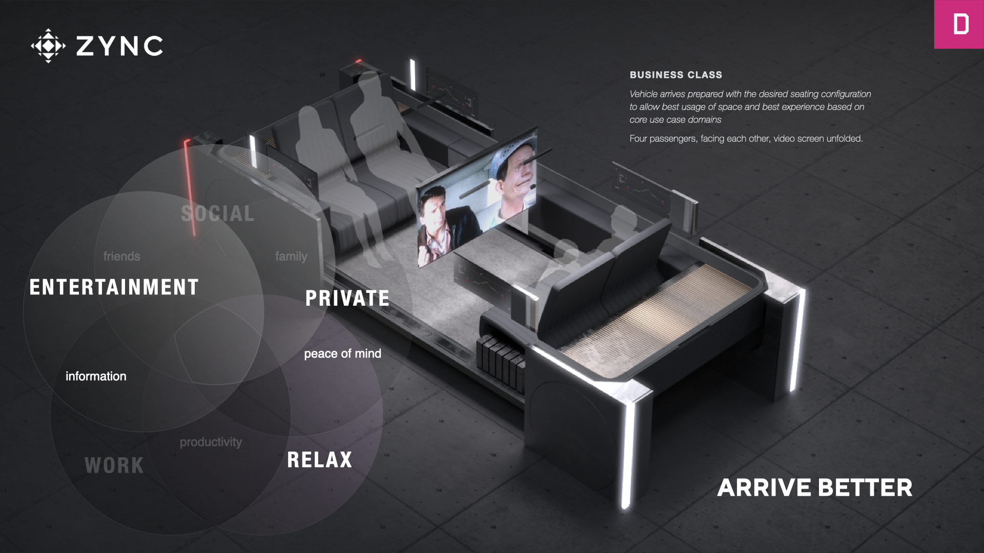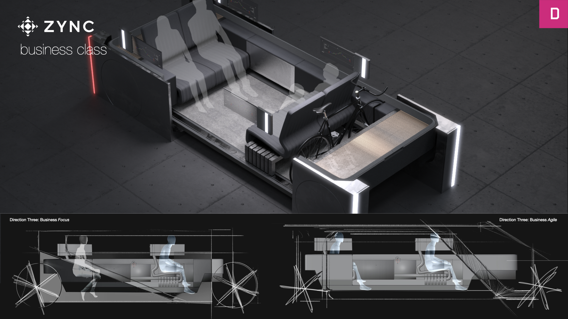 This show car concept included an immersive 3D dome experience and holographic conferencing for automotive applications. StrategyTask: Develop a product framework and roadmapApproach: Cross-functional product design exercises with a focus on vision definition and translation of goals into evolutionary product roadmap including identification of clear USPs Outcome: Vision definition for Zync’s role in an L5 environment with clear design direction for a first class autonomous rider experience ![]() ![]() ![]() ProductTask: Explore future product opportunities and (develop) evaluation matrixApproach: Future product vision development to identify top project opportunities to conceptualize, assess, and prototype Outcome: Ideated over 14 digital product opportunities including use cases with distinguished features and business plans. Applied objective criteria to measure and select top future projects for Zync ![]() ![]() ![]() ExperienceTask: Design L5 in-vehicle experience design for first class premium and business class levelApproach: Inside-out design to tailor every aspect of the vehicle to the most relevant use cases creating a design to trigger high desirability Outcome: Fully conceptualized interior designs for L4 and L5 autonomous ride sharing applications ![]() ![]() ![]()