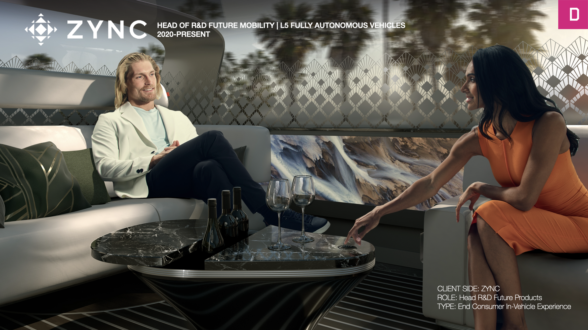 | 2020-2021 | ZYNC | Head of R&D future mobility experience design| L5 fully autonomous vehicles |